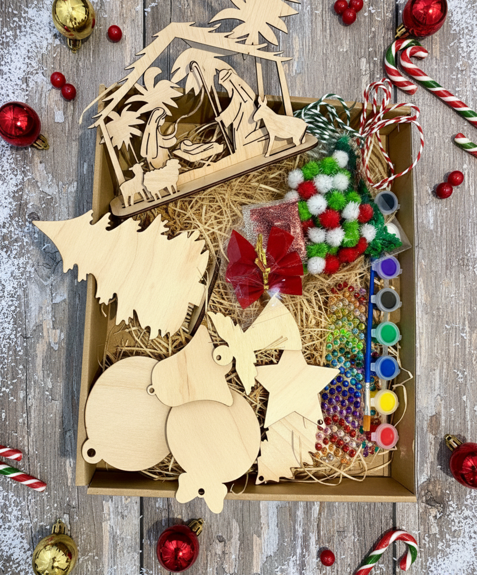 Kreatywny zestaw świąteczny DIY dla dzieci – stajenka, choinka oraz bombki